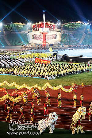 彩排中的第八屆全國大運(yùn)會開幕式充滿了嶺南特色。