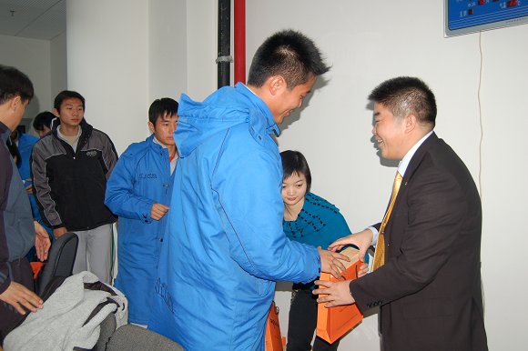 馮軍先生的的演講得到了隊(duì)員們的熱烈歡迎,會(huì)后馮軍先生還向足球隊(duì)每位成員贈(zèng)送了一套“愛國(guó)者國(guó)際象棋”,希望大家在比賽、訓(xùn)練之余,通過(guò)下棋來(lái)放松心情,體會(huì)“六贏”理念和團(tuán)隊(duì)精神的精髓。馮先生向每個(gè)隊(duì)員表示:華旗公司將永遠(yuǎn)向你們敞開大門,歡迎隊(duì)員們?cè)诋厴I(yè)之后加入華旗公司和“愛國(guó)者”團(tuán)隊(duì)。