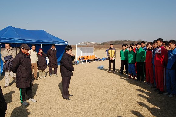 楊賓副書記在向全體隊員講話指出:“此次在韓冬訓(xùn)訓(xùn)練強度非常大,希望大家克服困難,虛心向韓國大學(xué)生足球隊學(xué)習(xí),在訓(xùn)練和比賽中充分發(fā)揮團隊精神,力爭將球隊的整體水平提高到一個新的檔次?!?/P>