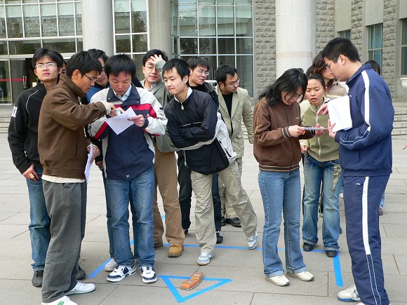 本次比賽在教學(xué)區(qū)內(nèi)設(shè)立了15個(gè)點(diǎn)簽處,42名研究生報(bào)名參加了比賽。比賽當(dāng)天風(fēng)力較大,這給參賽選手尋找目標(biāo)點(diǎn)帶來(lái)不少困難。比賽進(jìn)行得十分激烈,當(dāng)選手們?cè)谶h(yuǎn)處看到目標(biāo)點(diǎn)的標(biāo)志時(shí),為了爭(zhēng)取時(shí)間,都選擇了直線路程,甚至跨越過(guò)障礙物,以期能比對(duì)手占有更大的優(yōu)勢(shì)。從這一點(diǎn)看來(lái),這次“迷你”型的定向越野比賽倒真是有了幾分“職業(yè)越野賽”的氣氛。由于較高的氣溫和大量的運(yùn)動(dòng),各位選手在比賽中都臉色通紅汗流浹背,甚至有選手因?yàn)榭缭秸系K而受輕傷,但這并沒(méi)有影響選手們渴望勝利的心情。