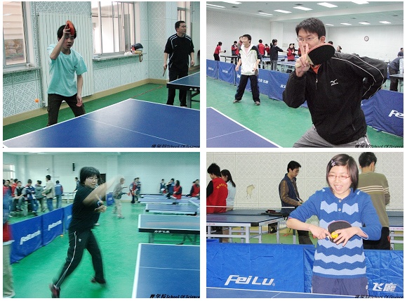2007年3月31日上午八點(diǎn),理學(xué)院首屆乒乓球比賽在校體育館乒乓球館拉開了帷幕。本著強(qiáng)身健體,豐富學(xué)生課余文化生活,同時(shí)也為將要在全校舉辦的乒乓球聯(lián)賽選拔人才做準(zhǔn)備的目的,本次乒乓球賽博得了理學(xué)院同學(xué)的積極響應(yīng),比賽現(xiàn)場(chǎng)氣氛異常熱烈。