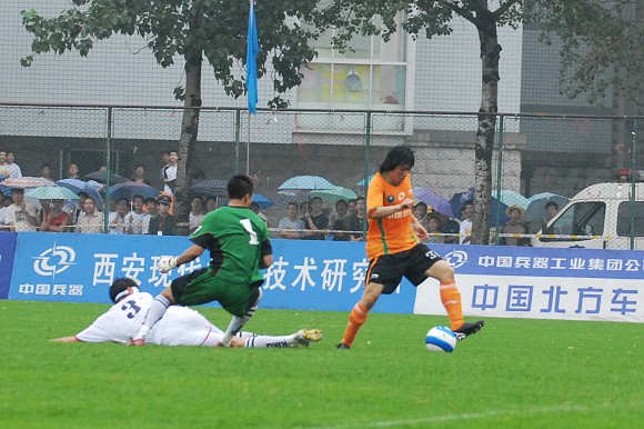 雖然北京昨天天降大雨,但北理工主場依然來了大量球迷,除了在校學(xué)生外,大批沒有球票的球迷站在場邊的鐵絲網(wǎng)外看完了比賽。在球迷的助威聲中,學(xué)生軍向宏登隊(duì)發(fā)起了一次次的進(jìn)攻。第12分鐘,前鋒楊思源突入禁區(qū)后小角度打門,被宏登門將撲出。