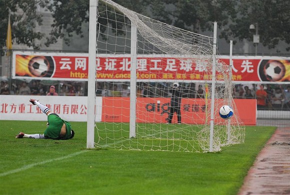 6分鐘后,韓國留學(xué)生金俊植射門得手,卻被誤判為越位。