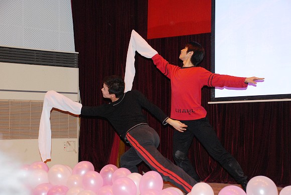來自北京舞蹈學院的學生表演的精彩舞蹈“詩樂舞·梁祝”博得師生們陣陣掌聲。