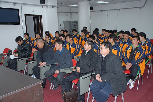 北京理工大學(xué)黨委書記焦文俊在聽取了球隊(duì)冬訓(xùn)及外援引進(jìn)工作的匯報(bào)之后作了重要發(fā)言,他指出,目前球隊(duì)受到了廣大師生及海內(nèi)外校友的強(qiáng)烈關(guān)注,在最近的幾次團(tuán)拜會(huì)上,知名校友都提及為北理工足球取得的成績(jī)感到非常的驕傲和自豪,足球隊(duì)為北京理工大學(xué)社會(huì)知名度的提高起到了很大的作用,希望足球隊(duì)全體成員戒驕戒躁,繼續(xù)努力訓(xùn)練和比賽。2008年球隊(duì)的任務(wù)還是比較重的,在保證中甲比賽爭(zhēng)取做到“站的更穩(wěn)、再創(chuàng)輝煌”的同時(shí),還要打好全國(guó)大學(xué)生足球聯(lián)賽的預(yù)賽的各項(xiàng)比賽,要看到自己在提高的同時(shí),其他高校的足球隊(duì)的水平也在飛速提高。在新春佳節(jié)即將來(lái)臨之際,祝愿大家訓(xùn)練學(xué)習(xí)雙豐收,同時(shí)按照教練組的安排,做好2008年各項(xiàng)比賽的準(zhǔn)備工作。