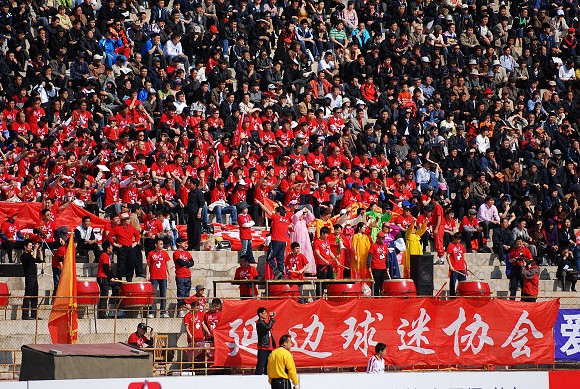 因為首輪輪空,延邊隊的聯(lián)賽首次亮相被推遲到今天,現(xiàn)場涌入近三萬名球迷。