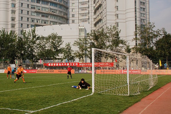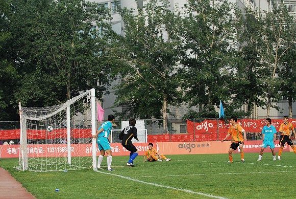 北理工被反超后,力圖追回比分,在比賽臨近尾聲時。北理工在對方禁區(qū)展開圍攻,此時的青島隊因為少一人,也只有全力防守,第87分鐘,北理工邊路大腳傳球吊入禁區(qū),雙方在禁區(qū)里形成混戰(zhàn),北理工中場球員劉猛亂軍中搶得皮球起腳射門,青島守門員因為距離太近,沒有來得及做出反應(yīng)皮球就已經(jīng)進入球網(wǎng),這樣場上比分改寫為2比2。