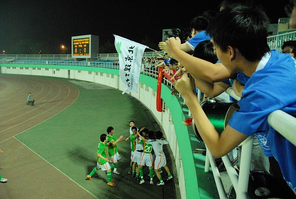 在6月7日客場與排名墊底的北京宏登的客場比賽中,北京愛國者大學(xué)生足球隊(duì)無論是球迷數(shù)量和場上局面都“反客為主”,最終以1:0拿下了這場非常關(guān)鍵的保級大戰(zhàn),排名也由之前的第十二位上升至第九位,并領(lǐng)先北京宏登隊(duì)7分,暫時(shí)脫離了降級區(qū)。