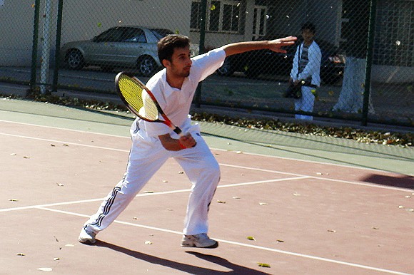 為了普及網(wǎng)球這項(xiàng)運(yùn)動(dòng),給廣大的網(wǎng)球愛(ài)好者提供一個(gè)比賽的和切磋技藝的平臺(tái),2008年10-11月體育部、網(wǎng)球協(xié)會(huì)聯(lián)合舉辦本次比賽。比賽共設(shè)有男子單打、男子雙打和女子單打三個(gè)項(xiàng)目,參加的人數(shù)男子單打有50個(gè)人參加,其中還有外國(guó)友人和一些外校選手,男子雙打一共有25隊(duì)參加,其中有老師和校外人士,女子單打共有16人參加,都是我們學(xué)校的學(xué)生,比賽為期四天。