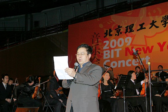 在音樂會(huì)開始前,黨委副書記、副校長楊賓發(fā)表了熱情洋溢的新年賀辭。他首先對(duì)廣大教職員工、廣大學(xué)生和離退休老同志致以新年的問候和祝福,隨后他簡要回顧了學(xué)校2008年在教學(xué)、科研、奧運(yùn)工作、基礎(chǔ)教育等方面取得的工作成績。最后,楊書記號(hào)召全校師生在新的一年里,統(tǒng)一思想、提高認(rèn)識(shí)、真抓實(shí)干、形成合力,促進(jìn)學(xué)校又好又快發(fā)展,向“國內(nèi)一流、國際知名”高水平研究型大學(xué)的建設(shè)目標(biāo)進(jìn)一步邁進(jìn),以各方面的優(yōu)異成績向建國60周年獻(xiàn)禮!