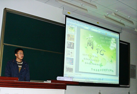 2009年3月22日,管理與經(jīng)濟學院學生科技創(chuàng)新協(xié)會在良鄉(xiāng)校區(qū)舉辦了本學期第一次活動“商論”,活動現(xiàn)場,科協(xié)成員們?yōu)榇蠹也シ帕艘曨l《學徒》和《財富人生•柳傳志》,并為到場的每一位同學贈送了北京理工大學第一份財經(jīng)類雜志《商界資訊》,生動的視頻短片和豐富的社會經(jīng)濟知識受到同學們熱烈的歡迎。