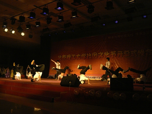 緊接著,街舞協(xié)會帶來的街舞表演同樣是激情無限,贏得了在場觀眾的熱烈喝彩。人民大學(xué)手語協(xié)會的手語表演,場面溫馨感人。我校畢業(yè)校友帶來的調(diào)酒表演掀起了現(xiàn)場互動小高潮。良鄉(xiāng)校區(qū)空竹協(xié)會的空竹表演技術(shù)嫻熟,觀眾們不禁嘖嘖稱嘆。跆拳道協(xié)會的表演更是助推晚會的高潮迭起。飛踢紙板、連環(huán)踢、手劈大理石、飛踢刀尖蘋果等,看得觀眾觀眾們屏息凝氣,聚精會神,生怕錯過哪一個精彩環(huán)節(jié),直到謝幕時,回過神的觀眾才報以如雷掌聲。
