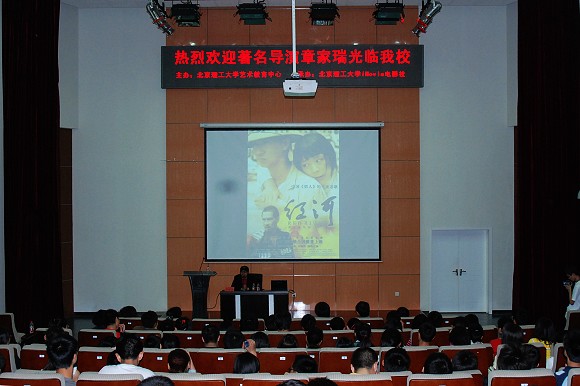 接近尾聲,章導(dǎo)贊美了理工大學(xué)良鄉(xiāng)校區(qū)的建設(shè),肯定了同學(xué)們?nèi)宋乃伎嫉纳疃?,鼓?lì)同學(xué)們珍惜美好的大學(xué)時(shí)光,心懷感恩,勇于承擔(dān)歷史責(zé)任,并感謝大學(xué)生對(duì)其電影作品的支持。