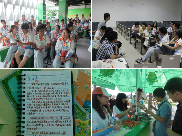 成績來之不易,我校延河之星志愿者總隊(duì)為保障暑期服務(wù)的順利進(jìn)行做了大量工作。7月初,總隊(duì)提前對550名志愿者的暑假服務(wù)意向展開了調(diào)查,同時(shí)安排工作人員保持暑期常態(tài)化值班,組織志愿者選崗并及時(shí)解答志愿者疑問。7月中旬,總隊(duì)根據(jù)我校“小V蜂”的高校崗服務(wù)次數(shù)和蜜糖數(shù)評選出了10名“志愿服務(wù)之星”,同時(shí)為更好地宣傳我校園博會志愿者工作,展現(xiàn)志愿者青春風(fēng)采,總隊(duì)舉辦了“志愿者攝影風(fēng)采大賽”并積極籌備學(xué)校的櫥窗展覽,鼓勵(lì)志愿者們通過自己的鏡頭記錄上崗服務(wù)的精彩時(shí)刻。此外,為加強(qiáng)志愿者間的交流和互動、使志愿者勞累的身心得以放松,總隊(duì)舉辦了一次校內(nèi)Party,并在我校包點(diǎn)崗位C01、C11各自設(shè)置一本志愿服務(wù)感悟留言,供上崗志愿者記錄感悟、傳授經(jīng)驗(yàn)??傟?duì)的細(xì)心工作,得到了志愿者們的積極響應(yīng),有效提高了我校“小V蜂”的服務(wù)熱情,在校內(nèi)營造了一種“踴躍服務(wù)園博,志愿點(diǎn)亮青春”的良好氛圍。
