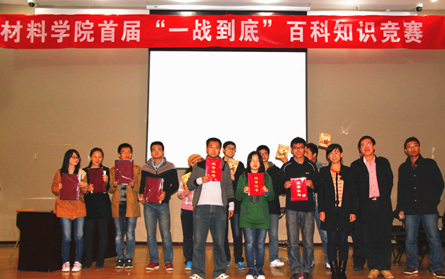 在大家的熱烈掌聲中材料學(xué)院首屆“一戰(zhàn)到底”百科知識競賽圓滿落下了帷幕。選手和觀眾都紛紛表示獲益良多,不僅收獲了知識,也增進了與他人的協(xié)作能力,加深了同學(xué)們之間的友誼。