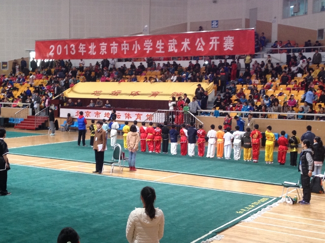 2013年10月底,由北京市中小學(xué)生體育運(yùn)動協(xié)會主辦、北京市武術(shù)院協(xié)辦北京市中小學(xué)生武術(shù)公開賽在北京市地壇體育館舉行。北京市中小學(xué)生武術(shù)公開賽匯集了我市各區(qū)縣中小學(xué)中的武術(shù)精英,代表了北京市中小學(xué)武術(shù)項(xiàng)目的最高水平,共有來自全市的107所小學(xué)代表隊(duì),以及44所中學(xué),參加了本次比賽。