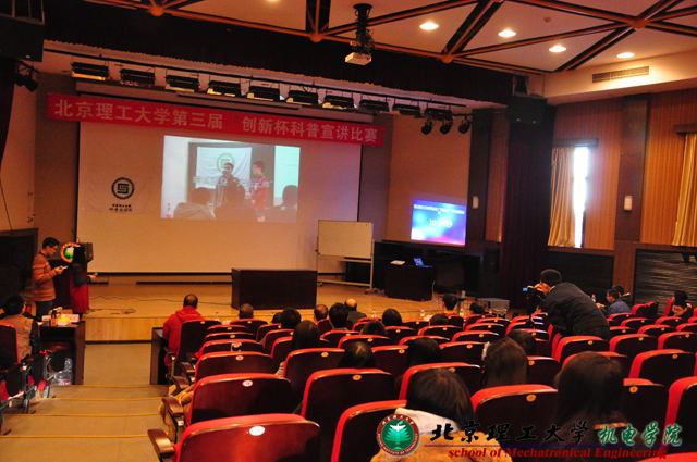 2013年11月17日,北京理工大學(xué)第三屆“創(chuàng)新杯”科普宣講比賽復(fù)賽在7號樓報(bào)告廳拉開帷幕,北京理工大學(xué)“創(chuàng)新杯”科普宣講比賽由北京理工大學(xué)研究生院主辦,機(jī)電學(xué)院科普宣講團(tuán)、研究生會承辦,宇航學(xué)院、機(jī)械與車輛學(xué)院協(xié)辦。此次復(fù)賽的評委有,教育部中央教育科學(xué)研究所科技教育中心研究員汪耆年,北京市海淀區(qū)寄讀學(xué)??萍冀處熗躏w,泰科維思科技發(fā)展有限公司張照立,宣武區(qū)科技老師張健雄,機(jī)電學(xué)院副書記陳軍,機(jī)電學(xué)院分團(tuán)委副書記鄧巖、王雪慧。