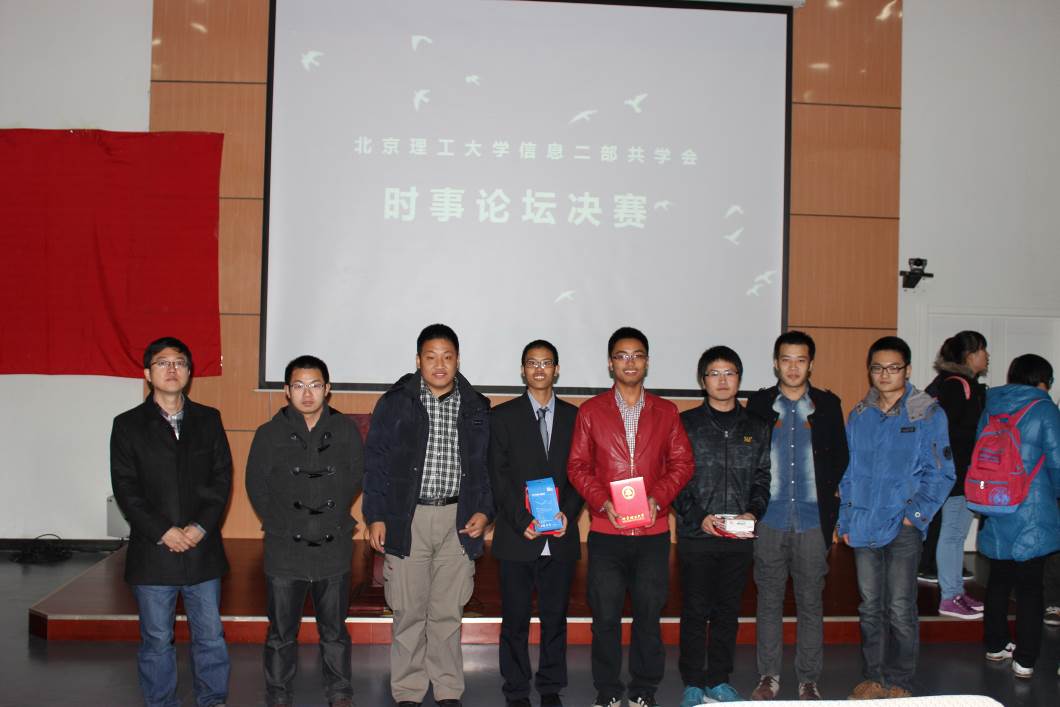 經(jīng)過近兩個小時的激烈角逐,各個獎項塵埃落定。杜唯同學(xué)的 “霧中紅顏醉——論霧霾”獲得第一名,陳冬清的“中國的戰(zhàn)略危機(jī)與突破島鏈封鎖”獲得第二名;肖凡的“如何看待臺風(fēng)海燕背后的問題”獲得第三名。并且這三位同學(xué)代表學(xué)部參加了學(xué)校的時事論壇復(fù)賽,最終杜唯和陳冬清成功入圍11月29日舉行的北京理工大學(xué)第十屆學(xué)生時事論壇決賽。在此預(yù)祝他們?nèi)〉脙?yōu)異的成績。