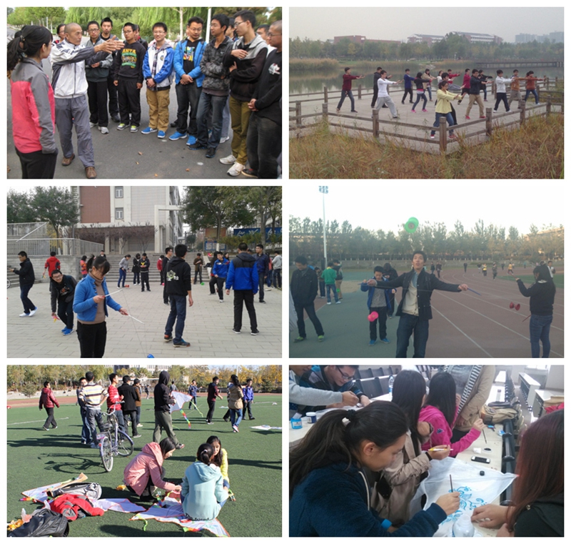 10月中旬到11月,各團(tuán)支部積極發(fā)揮主觀能動(dòng)性,舉辦了豐富多彩的民族傳統(tǒng)體育項(xiàng)目。16131201支部邀請(qǐng)峨眉拳大師靳寶生及他的三位弟子集體學(xué)習(xí)了中華峨眉拳,30011302支部共同體驗(yàn)了太極拳, 10021301支部選擇抖空竹作支部運(yùn)動(dòng),10411201支部進(jìn)行了女生教男生踢毽子比賽,09321201支部選擇了傳統(tǒng)畫(huà)風(fēng)箏、放風(fēng)箏項(xiàng)目,10111201支部則將老北京傳統(tǒng)登香山運(yùn)動(dòng)進(jìn)行了發(fā)揚(yáng)……理材團(tuán)總支還聘請(qǐng)了空竹、太極拳等的小講師,為各支部提供技術(shù)支持。各式各樣的體育活動(dòng)在同學(xué)們火熱的青春和高昂的積極性中如火如荼地進(jìn)行著,到處閃動(dòng)著活躍的身影,令深秋別具一番風(fēng)景。
