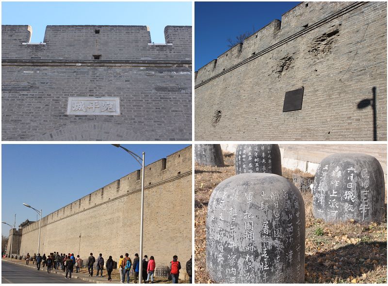 在宛平城腳下,城墻上的彈坑和槍痕,仿佛將大家?guī)肽茄晷蕊L(fēng)的戰(zhàn)爭(zhēng)歲月。城墻下的黑色石鼓林,清楚的記錄著當(dāng)年侵華日軍的殘酷暴行。