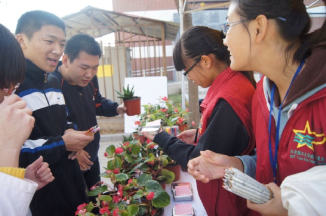 志愿服務(wù)不總是轟轟烈烈,更需要從身邊做起。延河之星志愿者們始終注重從身邊做起,服務(wù)校園,這其中最具代表性的應(yīng)該當(dāng)屬每年的迎新志愿服務(wù)活動。每到9月開學(xué)的季節(jié),來自祖國各地的新同學(xué)們,最先感受到的就似乎來自北理工迎新志愿者們?nèi)缁鸢愕臒崆?,從火車站到校園中,志愿者們的服務(wù)無處不在,為新生們提供周到細(xì)致的服務(wù)。近年來,立足校園開展以環(huán)保為主題的志愿服務(wù),也成為總隊工作的新方向。不論是參與全球“熄燈一小時”行動,在校園中倡導(dǎo)節(jié)能理念,還是以廢棄資源回收為主題,用綠色植物兌換再生資源的創(chuàng)意活動,再到組織開展校園生活大賣場,幫助同學(xué)們閑置資源的有效流通,都彰顯了延河之星志愿服務(wù)總隊緊跟時代主題、深化志愿服務(wù)內(nèi)涵的使命感。又如開展的“我愛我北理”系列活動,送綠植進(jìn)教室,檢查教室鐘表、網(wǎng)口,了解教室設(shè)備問題及時反饋管理處報修,方便師生的學(xué)習(xí)生活,志愿服務(wù)“潤物細(xì)無聲”。
