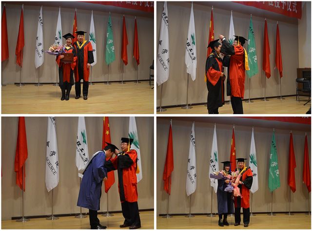 生命學(xué)院院長鄧玉林為畢業(yè)生授予學(xué)位。在國旗、校旗、院旗下,在一片鮮花和掌聲中,每一個畢業(yè)生在我們和藹可親的師長身旁留下了最燦爛的笑容。相信這會成為每個畢業(yè)生一生中最珍貴的記憶!
