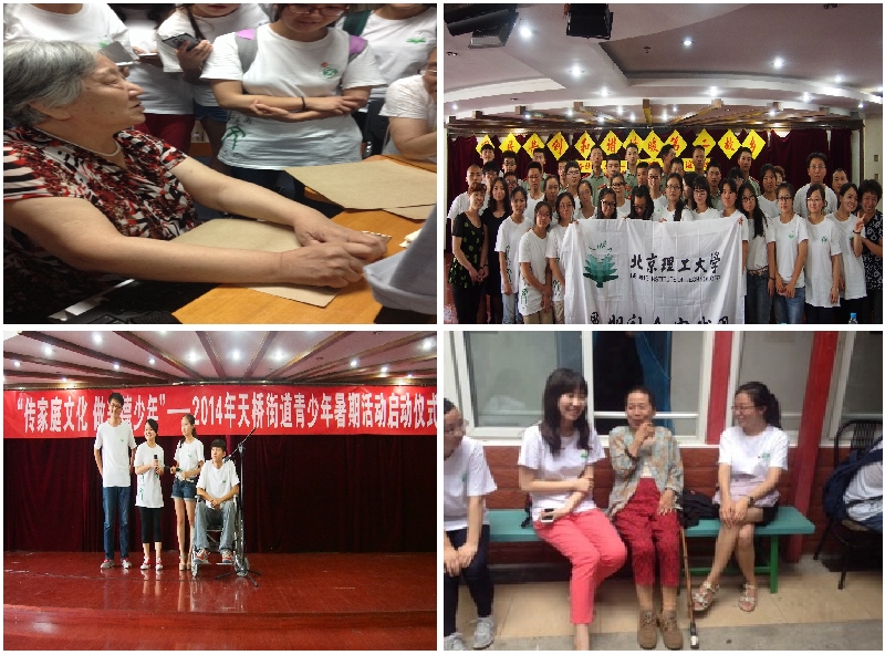 分配在街道機(jī)關(guān)工作的同學(xué)們?cè)谏鐓^(qū)青年匯田老師的帶領(lǐng)下開(kāi)展了四次全體參與的大型活動(dòng),無(wú)論是社區(qū)暑期活動(dòng)啟動(dòng)儀式還是和武警七中隊(duì)的聯(lián)誼活動(dòng)抑或是參觀敬老院及盲文圖書(shū)館都能看見(jiàn)同學(xué)們充滿熱情地活躍著的身影。在天橋社區(qū)暑期活動(dòng)啟動(dòng)儀式中同學(xué)們從彩排到現(xiàn)場(chǎng)布置到主持都精心策劃,并為活動(dòng)獻(xiàn)上了一個(gè)歌曲節(jié)目和小品節(jié)目;八一臨近前夕,由留學(xué)路主辦的軍民聯(lián)誼歌詠大賽更是展現(xiàn)了同學(xué)們的多才多藝和熱情大方,不管是現(xiàn)場(chǎng)小游戲還是軍民情歌對(duì)唱,同學(xué)們都能夠積極參與,為武警七中隊(duì)的官兵們帶去節(jié)日的問(wèn)候;實(shí)習(xí)尾聲,同學(xué)們參與了寶心敬老院以及中國(guó)盲文圖書(shū)館的志愿者服務(wù),陪敬老院的老人們聊天,聽(tīng)他們講生活的故事,;參觀盲文圖書(shū)館,盡微薄之力幫助到他人。這些活動(dòng)讓同學(xué)們?cè)趯W(xué)習(xí)如何服務(wù)的同時(shí)獲得了一定的成就感,也對(duì)志愿者的工作越來(lái)越感興趣。與此同時(shí),借助天橋社會(huì)實(shí)踐的平臺(tái),人文學(xué)院青年志愿者協(xié)會(huì)和中國(guó)盲文圖書(shū)館簽訂了長(zhǎng)期志愿者服務(wù)的協(xié)議,志愿者們的服務(wù)精神也將一直傳承。