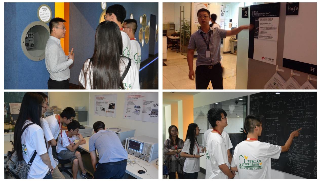 緊接著,資深銷售工程師王奉帶領(lǐng)大家參觀了公司具有里程碑意義的儀器,包括最早的信號(hào)源、示波器、銫鐘源等等。隨后,實(shí)踐團(tuán)走進(jìn)了是德科技的開放實(shí)驗(yàn)室。高級(jí)應(yīng)用工程師于洋詳細(xì)地為同學(xué)們介紹了各種儀器的型號(hào)及性能,并為同學(xué)們做了兩個(gè)演示實(shí)驗(yàn)。實(shí)驗(yàn)室免費(fèi)對(duì)外開放,個(gè)人和機(jī)構(gòu)都可以撥打預(yù)約電話申請(qǐng),通過審核就可以免費(fèi)使用這些昂貴的儀器設(shè)備,接受專業(yè)工程師的指導(dǎo)。據(jù)介紹,位于北京的這家開放實(shí)驗(yàn)室每周平均要接待7~8家單位。是德科技在中國一共建立了四個(gè)開放實(shí)驗(yàn)室,分別位于北京、上海、深圳和成都。