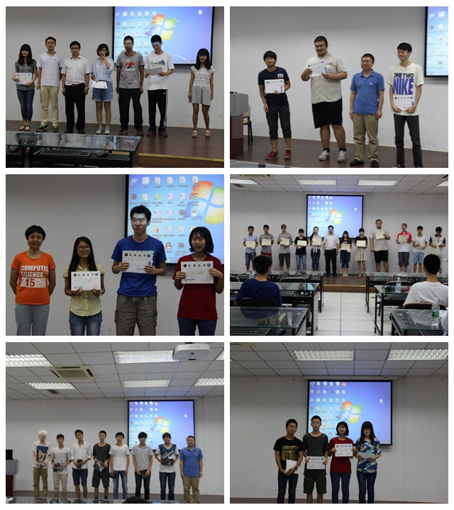 在8月2號暑期集訓(xùn)的閉幕式上,各類專攻方向的參訓(xùn)學(xué)員都在一定程度上有所收獲,參加各類科技競賽的同學(xué)做了精彩的成果展示;趙漢青老師就各項集訓(xùn)工作做了總結(jié)匯報。出席閉幕式的趙滿老師,譚毓安老師和祝烈煌老師為在總結(jié)賽中獲得好成績的10支隊伍頒獎,并為整個集訓(xùn)進行了總結(jié)發(fā)言,希望同學(xué)們能善抓機遇,通過老師及同學(xué)的發(fā)言,把握演講過程中的思路技巧,多培養(yǎng)自身在這方面的能力,勤思考,構(gòu)建一種良好的思維框架,多元化地自我提升。至此,2015年暑期集訓(xùn)工作圓滿結(jié)束。