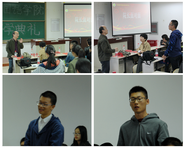 接下來進(jìn)行的是“院長面對(duì)面活動(dòng)”。來自于德語系的魏卜堃同學(xué)提出了如何堅(jiān)守本心的問題,陳大明書記指出學(xué)會(huì)創(chuàng)新,學(xué)會(huì)正心。而隨后李一驕同學(xué)則提出了如何發(fā)揮外語學(xué)習(xí)者的力量,為社會(huì)貢獻(xiàn)出自己的一份力,陳大明書記從外語學(xué)習(xí)者的未來與社會(huì)現(xiàn)狀作出解釋,詳實(shí)深刻。肖昱同學(xué)從讀書的角度出發(fā),提出如何將學(xué)習(xí)與讀書結(jié)合的問題,陳大明書記指出讀書的目的是了解世界、更好地理解自己。有的同學(xué)提出如何正確面對(duì)理工科大學(xué)外語學(xué)院男生的尷尬地位,吳文君老師以馬云、李肇星和吳建民等為例子,勉勵(lì)大家只要努力學(xué)習(xí)專業(yè),在理工科大學(xué)里一樣可以找到屬于自己的舞臺(tái),活出精彩。西班牙專業(yè)的同學(xué)則提出如何盡快掌握西語的發(fā)音問題,西語系負(fù)責(zé)人曾艷老師以自己的親身經(jīng)歷勉勵(lì)學(xué)生要有耐心、韌勁和恒心。整個(gè)現(xiàn)場氣氛熱烈、活躍。
