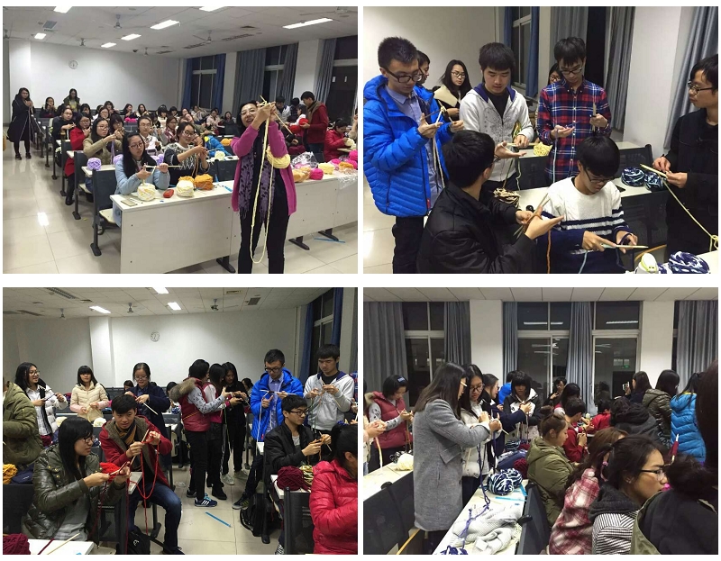 為使同學(xué)們迅速掌握編織技巧,失獨(dú)小組于11月12日、17日分別在良鄉(xiāng)校區(qū)理教406教室和心理與社會(huì)工作實(shí)驗(yàn)室舉辦編織培訓(xùn)活動(dòng)。賈曉明老師親自帶領(lǐng)小組成員,手把手地教授圍巾編織技巧。培訓(xùn)現(xiàn)場(chǎng)氣氛熱烈,同學(xué)間相互交流、相互學(xué)習(xí)、相互促進(jìn)。短短2個(gè)小時(shí)內(nèi),現(xiàn)場(chǎng)80余位學(xué)生便從剛領(lǐng)到毛線時(shí)的茫然與疑惑,達(dá)到了熟練掌握了起針、平針、情人扣等基本編織手法的程度。高效率的培訓(xùn)設(shè)計(jì)與有條不紊的現(xiàn)場(chǎng)組織推動(dòng)了活動(dòng)的順利開展。