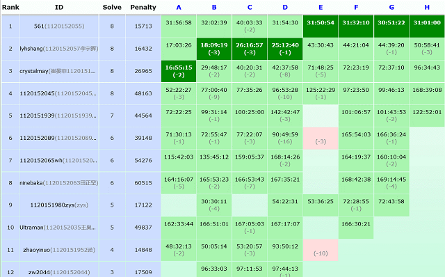 本學期針對2015級學生的算法培訓工作預計共12周:其中前8周為基礎(chǔ)算法的學習,后4周是對前8周所學習的算法鞏固與提升。前8周講授的基礎(chǔ)算法包括DFS、BFS、二分法、貪心算法、DP、最小生成樹、最短路以及樹狀數(shù)組共計八個專題。每個專題由兩名大學生科技創(chuàng)新創(chuàng)業(yè)基地算法藝術(shù)學生創(chuàng)新實驗室的2015級優(yōu)秀學員授課,每個專題歷時一周。截至目前已進行七周,開展情況順利。
