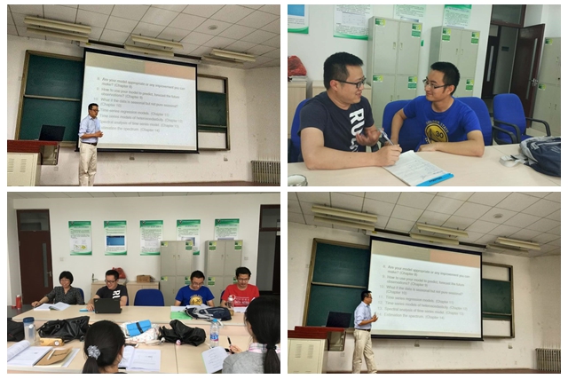 寧煒副教授的此次訪問受到了學(xué)校研究生院的大力支持。在訪問期間,寧煒老師為學(xué)院碩士和博士生開設(shè)《時間序列分析》雙語課程。課程通過具體實(shí)例,系統(tǒng)講授時間序列的基本概念、理論方法、計(jì)算技巧以及國際前沿研究熱點(diǎn)。寧煒老師學(xué)術(shù)風(fēng)格嚴(yán)謹(jǐn)、講課方式幽默生動、課程內(nèi)容豐富,不僅有效開拓了學(xué)生的國際視野,也極大豐富了學(xué)生的知識體系。