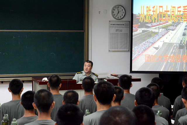 9月4日晚,北理工軍訓(xùn)旅邀請國防大學(xué)房兵教授為全體參訓(xùn)學(xué)員進(jìn)行《從勝利日大閱兵看武裝力量大轉(zhuǎn)型》的國防教育講座。
