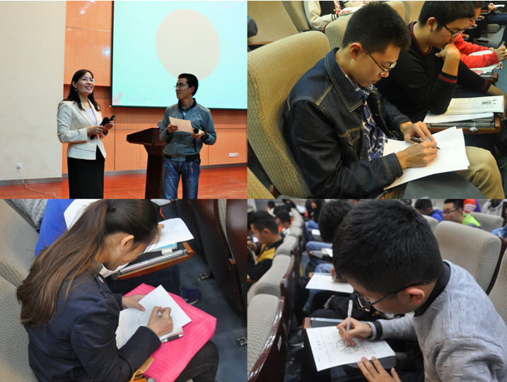 “思路決定出路,現(xiàn)今所做的事情決定著你將來的生活?!蓖跣〉ぴ趯?duì)同學(xué)們進(jìn)行了看圖測(cè)驗(yàn)和NLP資源鎖定系統(tǒng)的互動(dòng)后如是說。接著,她向大家詳細(xì)介紹了幸福人生思考模式,在老師的耐心引導(dǎo)下,同學(xué)們明白了“有想法就要敢于行動(dòng)”的道理。王小丹老師提出“成功五問”,這讓同學(xué)們不禁反思自己的生活軌跡,并萌發(fā)了對(duì)自己的人生進(jìn)行細(xì)致規(guī)劃的愿望。