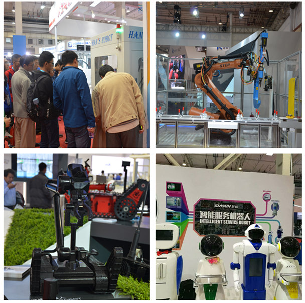 大型機(jī)器人模特在海藍(lán)色的“世界機(jī)器人博覽會”字幕下擺著呆萌的姿勢迎接前來參觀的人群。而各式各樣各種功能的機(jī)器人羅列在展覽廳中——不管是服務(wù)性機(jī)器人、仿人機(jī)器人還是機(jī)械手。我們圍著展覽廳走了一圈,仔細(xì)觀察著每一個(gè)智能機(jī)器人。