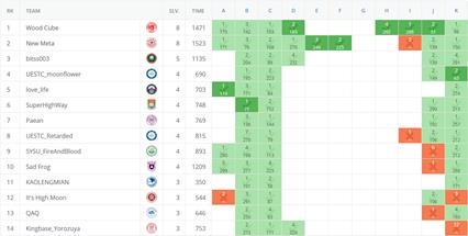 本次比賽題目難度大,代碼量大,隊(duì)員們團(tuán)結(jié)協(xié)作、集中精力、積極思考,在短時(shí)間內(nèi)已提出六道題的解題思路。但是由于編碼上的難度,在比賽封榜前隊(duì)員們只順利通過(guò)了四題,全隊(duì)列于全場(chǎng)第四的位置。最后一小時(shí),隊(duì)員們沒(méi)有滿足于當(dāng)前成績(jī),也沒(méi)有因賽題的難度退縮,繼續(xù)努力修改代碼,終于在比賽結(jié)束前十分鐘又通過(guò)一題,名次上升到第三,奪得大賽季軍!