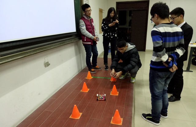 11月19號,“world of tank”遙控小車比賽在理教404、405教室火熱進行,第一場活動優(yōu)勝的40組選手進入了第二階段比賽。相對比之前的比賽,本次遙控小車比賽,零件數(shù)量更多、技術(shù)要求更高,而每組選手也愈發(fā)專注、團結(jié)一致,分工明確:一人雙手拿設(shè)備,細致的繞著銅絲,制作動力之源——馬達;一人各種工具并用,一點點地拼接車體,調(diào)整零件位置;一人仔細地拼接電路,不斷測試。最后40輛小車陸續(xù)開上了賽道展開時間與速度的競技,并由專業(yè)評委打分確定了可以晉級最終決賽的30組名單。
