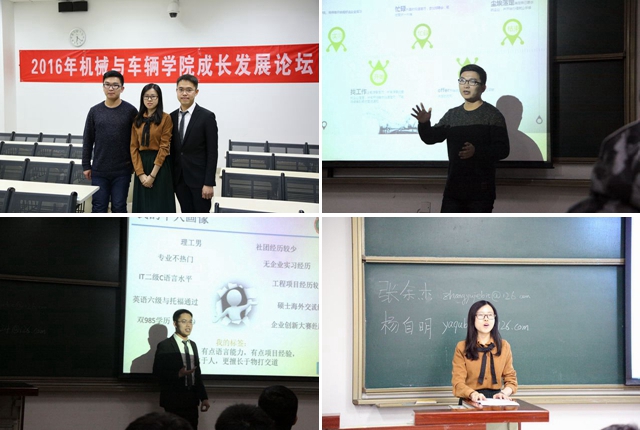 至此,2016年機械與車輛學院第三屆學生成長發(fā)展論壇圓滿落幕。本次活動從學習規(guī)劃、就業(yè)指導、保研、考研、留學等多個同學們所關注的話題進行講解,通過此次活動,同學們對于大學的學習生活有了初步的認識與規(guī)劃,對于日后眾多的畢業(yè)去向有了整體的把握,建立起自己的目標,并不斷充實自己,為之奮斗。作為學院“一年級工程”的重要組成部分,學生成長發(fā)展論壇今年已經(jīng)是第三屆,三年來,學院堅持以論壇的形式對學生的生涯規(guī)劃與成長發(fā)展作指導,均起到了非常好的效果。學院會繼續(xù)堅持打造學生個性化發(fā)展的支撐平臺,為學院高素質(zhì)個性化人才培養(yǎng)目標的實現(xiàn)提供助力。