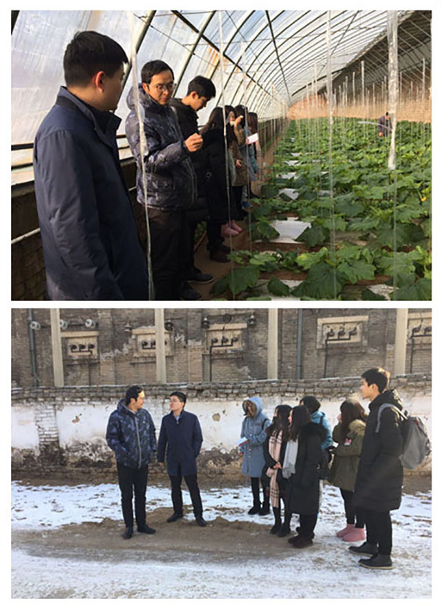 圖二:實(shí)踐團(tuán)參觀橋溝村蔬菜大棚