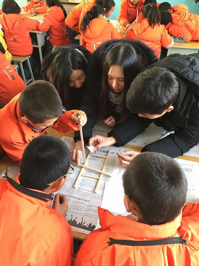 下午,學(xué)院一行人來到橫泉小學(xué),與當(dāng)?shù)貙W(xué)生進(jìn)行了交流互動(dòng)。恰逢北京理工大學(xué)的研究生支教團(tuán)隊(duì)正在授課,在征得他們同意后國(guó)際教育學(xué)院學(xué)生也參與到了課堂中來,與學(xué)生一起完成投石機(jī)的制作和比賽。課后,實(shí)踐團(tuán)成員與橫泉小學(xué)的學(xué)生們一起做游戲,并將事先準(zhǔn)備的文具及糖果等當(dāng)作獎(jiǎng)勵(lì)贈(zèng)送他們。