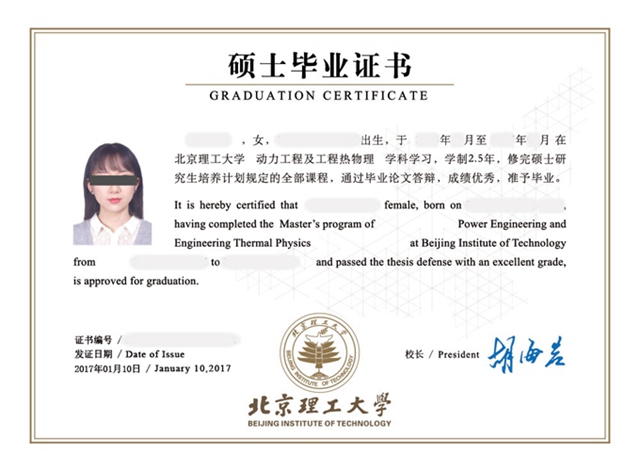 北京理工大學研究生新版中英文畢業(yè)證書頒發(fā)