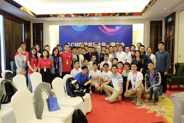 5月14日晚上,參賽團(tuán)隊(duì)受邀出席“ACM圖靈獎(jiǎng)五十年中國大會(huì)慶祝晚宴”及頒獎(jiǎng)典禮。Vinton Cerf博士和教育部科技發(fā)展中心李志民主任一起為獲獎(jiǎng)團(tuán)隊(duì)頒獎(jiǎng)。