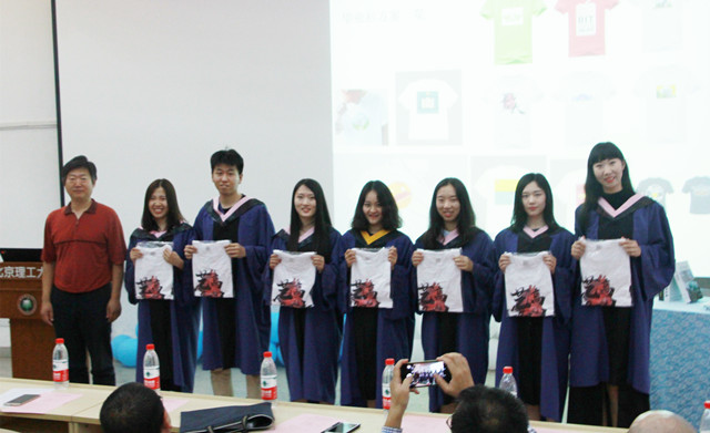 郭宏宣讀了優(yōu)秀畢業(yè)研究生名單,他勉勵同學(xué)們要保持積極向上的心態(tài),在今后的工作和生活中能夠正視挫折、勇于挑戰(zhàn),不斷歷練和完善自我。同時也希望同學(xué)們能夠不忘母校,?;貋砜纯础kS后,他為畢業(yè)生代表贈送了畢業(yè)紀(jì)念衫,希望每一位設(shè)計學(xué)子能夠好好的磨練專業(yè)技藝,在未來的道路上能夠無往而不勝。
