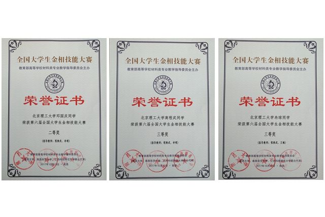 我校材料學(xué)院領(lǐng)隊姜春鳳老師和指導(dǎo)教師程煥武老師、李碩老師率三位同學(xué)組成參賽團隊抵達賽場。經(jīng)過三場緊張比賽,代表我校參賽的3位選手分獲二等獎和三等獎。電子封裝專業(yè)鄧國慶同學(xué)獲得金相大賽二等獎,電子封裝專業(yè)高程武同學(xué)和材料控制與成型專業(yè)冉瓊同學(xué)獲得三等獎。程煥武老師獲優(yōu)秀指導(dǎo)教師獎。