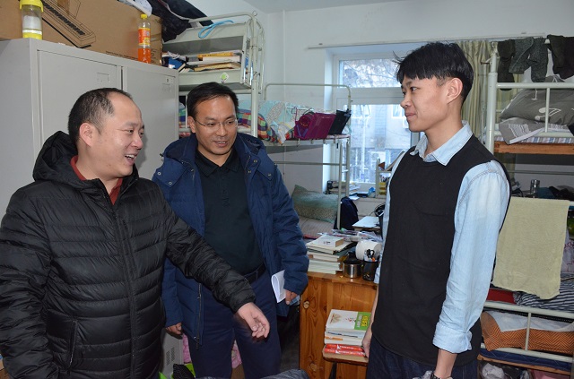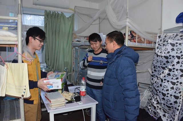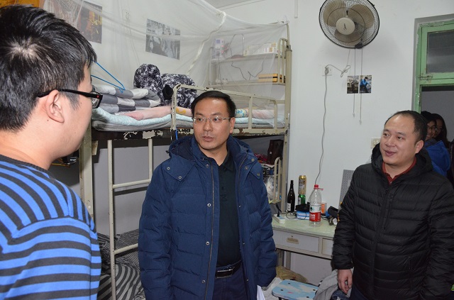 12月8日當(dāng)天,機(jī)電學(xué)院黨委書(shū)記王偉,副書(shū)記、副院長(zhǎng)陳軍,團(tuán)委書(shū)記于滿與學(xué)生干部一同,來(lái)到2014級(jí)學(xué)生居住的公寓。