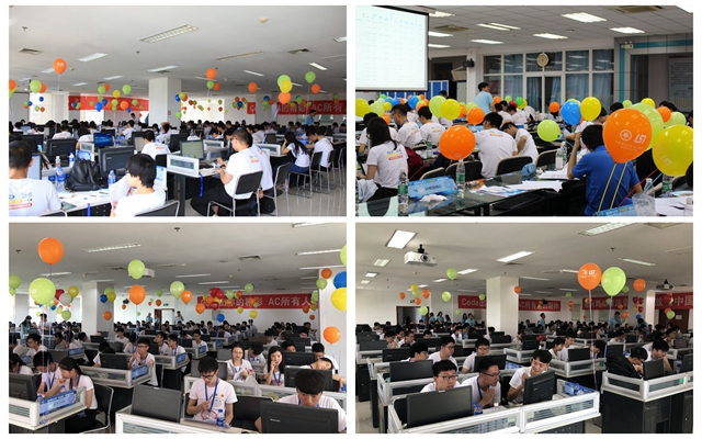 比賽在中關(guān)村和良鄉(xiāng)兩個賽區(qū)同步進(jìn)行。上午,ACM/ICPC訓(xùn)練基地教練、大賽評審小組成員林永鋼老師宣布比賽開始,大賽正式拉開帷幕。程序設(shè)計大賽是一項旨在展示大學(xué)生創(chuàng)新能力、團(tuán)隊精神和在壓力下編寫程序、分析和解決問題能力的競賽,主要面向本科生和低年級研究生,自2004年至今已成功舉辦十三屆,是我校參與人數(shù)最多的科技類競賽之一,歷屆比賽參加總?cè)藬?shù)達(dá)6000余人,已成為我校程序設(shè)計愛好者的節(jié)日。今年,中關(guān)村校區(qū)和良鄉(xiāng)校區(qū)的兩個賽場共有來自14所高校的239個隊伍650名選手參賽。此次比賽共設(shè)置10道題目,采用ACM評分規(guī)則,程序正誤由Online Judge系統(tǒng)自動判評。長達(dá)5個小時的激烈角逐,不僅是腦力的比拼,而且是耐力的較量。參賽選手爭分奪秒,隨著榜單的不斷刷新,機房上空漸漸升起彩色的云朵。