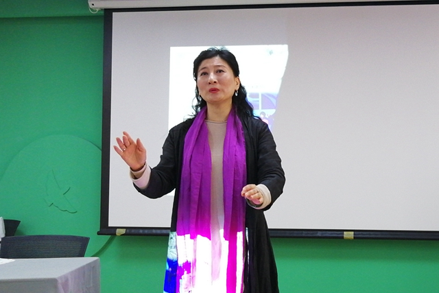 陳澄講述了淮劇的起源與發(fā)展,詳細(xì)介紹了南派、北派、東路、西路四個各具特色的淮劇流派。她言傳身教,用一段段經(jīng)典的作品選段來表現(xiàn)淮劇藝術(shù)百花齊放的聲腔特點,時而高亢,時而悲涼。陳澄用自己對淮劇的傳承、改革和創(chuàng)新的事跡勉勵大家,偉大的藝術(shù)來源于實踐,傳統(tǒng)藝術(shù)既需要繼承老一輩藝術(shù)家們留下來的文化底蘊,也需要足夠的精力去不斷地嘗試與革新,并以淮劇《小鎮(zhèn)》為例,講述戲劇所折射出的人生哲理及其教育意義,強調(diào)戲劇文化在弘揚社會主義核心價值觀、傳播中國傳統(tǒng)文化、堅定文化自信等方面的重要意義。講座最后,陳澄為大家表演精彩的淮劇選段,并與學(xué)生合影留念。