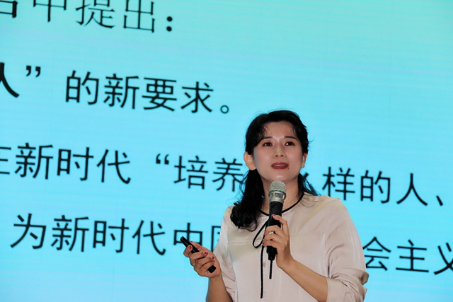 張艦月進(jìn)行“擔(dān)復(fù)興大任,做時(shí)代新人”主題講座。她肯定了本次團(tuán)校培訓(xùn)中各小組成員積極參與、重視實(shí)踐、緊緊圍繞“擔(dān)復(fù)興大任 做時(shí)代新人”的主題開展活動(dòng),同時(shí)也指出了各團(tuán)隊(duì)在學(xué)習(xí)實(shí)踐中的一些不足與需要改進(jìn)的地方,并給出了未來開展活動(dòng)的建議與指導(dǎo)。在主題講座部分,她帶領(lǐng)學(xué)員們學(xué)習(xí)“十九大報(bào)告”中習(xí)近平總書記對青年人的期望,同時(shí)結(jié)合習(xí)總書記在2014年5月4日、2018年5月2日兩次在北京大學(xué)的講話精神,引導(dǎo)與教育青年思考在新時(shí)代,新青年的新使命。她結(jié)合近期國家、學(xué)校、學(xué)院的活動(dòng),深入淺出,鼓勵(lì)團(tuán)員骨干,組織活動(dòng)要勤思考、重學(xué)習(xí)、挖內(nèi)涵,拓層面和看收獲。此外,她帶領(lǐng)團(tuán)員青年們剖析與學(xué)習(xí)了“社會主義核心價(jià)值觀”的內(nèi)容,以三個(gè)問題為引入,引導(dǎo)學(xué)生們樹立正確的“三觀”,倡導(dǎo)學(xué)生們身體力行、勇做榜樣,堅(jiān)定不移的弘揚(yáng)與踐行社會主義核心價(jià)值觀。