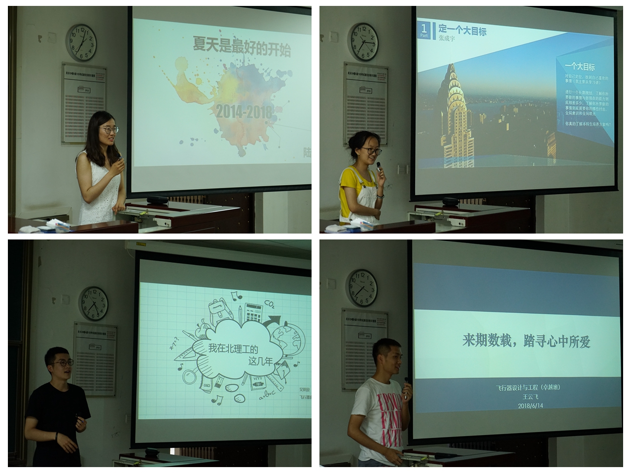 宇航學(xué)院2014級本科生德育答辯圍繞“擔(dān)復(fù)興大任,做時(shí)代新人”主題教育活動(dòng),以一句古詩作為答辯交流會(huì)的主題?!坝锨嗵鞌埫髟隆薄吧倌晷氖庐?dāng)拏云”等豪言壯志的詩句表達(dá)出了學(xué)子們擔(dān)當(dāng)作為的決心與斗志。通過德育答辯,同學(xué)們對過去進(jìn)行了反思與總結(jié),對未來進(jìn)行了規(guī)劃和展望。參與德育開題的老師對同學(xué)們的答辯進(jìn)行了指導(dǎo)與點(diǎn)評,幫助同學(xué)們樹立志向,鼓勵(lì)同學(xué)們擔(dān)當(dāng)重任,祝愿同學(xué)們前程似錦。